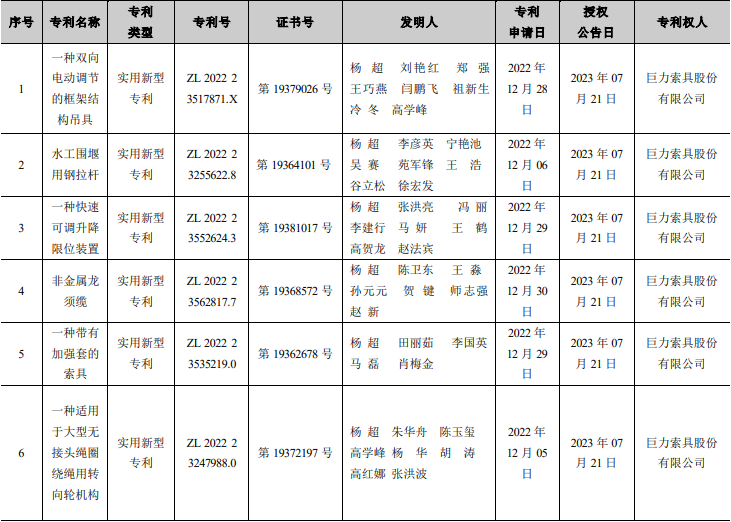 8月1日公告,公司8月1日收到中华人民共和国国家知识产权局授予的8项实用新型专利证书。