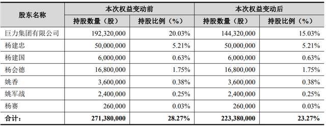 去年11月28日,巨力集团再度官宣转让股份。公告显示,巨力集团计划将所持的5%上市公司股份转让给上海步润尊享1号私募证券投资基金,转让价格为6.48元/股,合计套现约3.11亿元。巨力集团表示,其转让股份是源于自身资金需求。此次转让完成后,杨氏家族及一致行动人的持股比例降至23.27%。