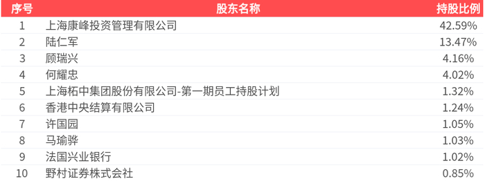 公司股东户数为2.00万户,前十大股东持股数量为3.12亿股,占总股本比例为70.74%,前十大股东持股情况如下: