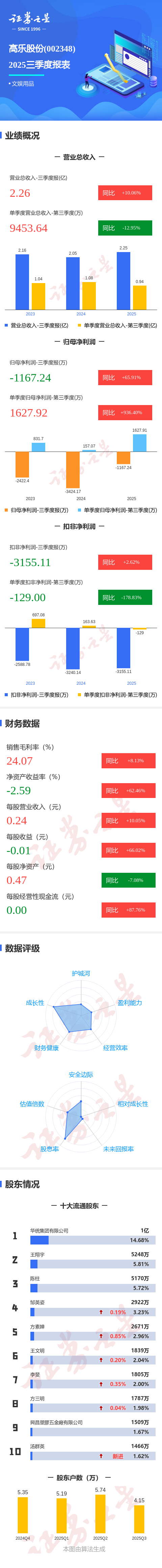 图解高乐股份三季报:第三季度单季净利润同比增长936.40%