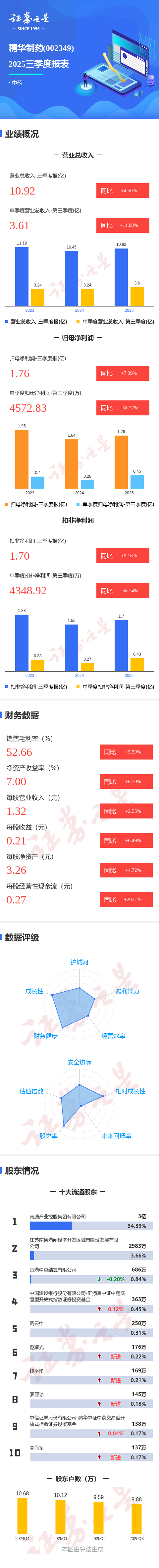 图解精华制药三季报:第三季度单季净利润同比增长58.78%