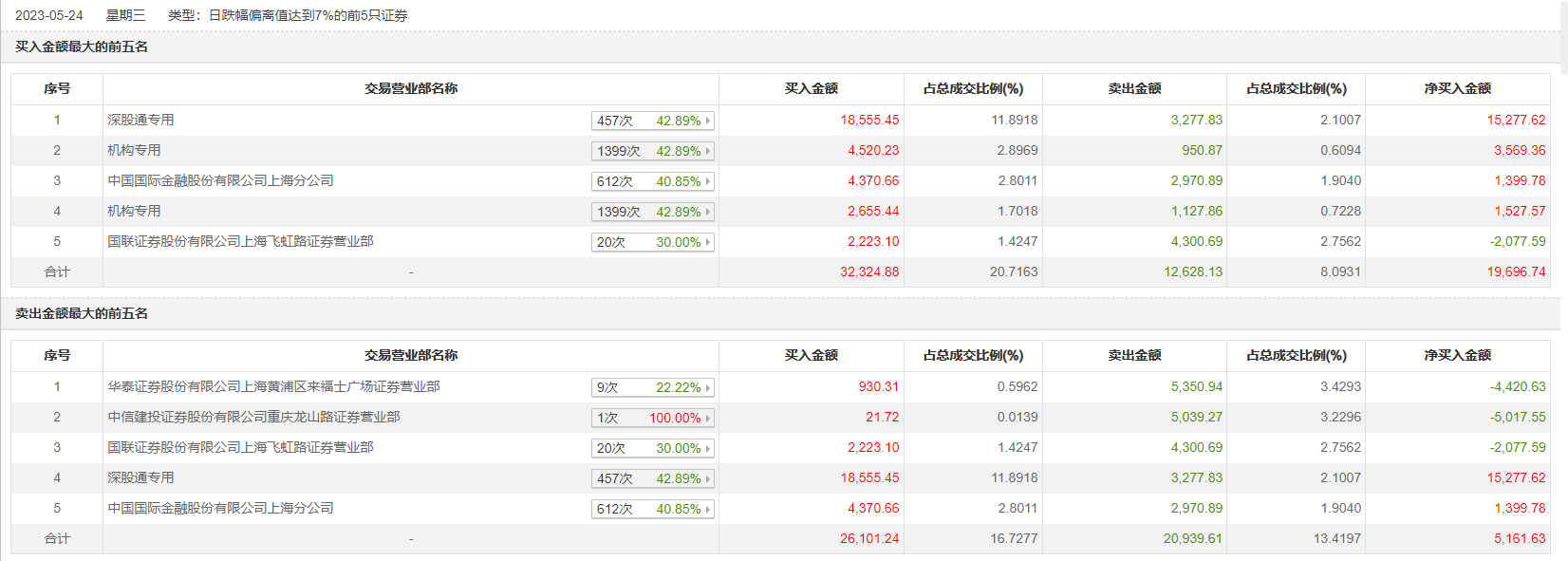 具体来看,机构买入7175.66万元,卖出2078.73万元,合计净买入5096.94万元。此外,华泰证券上海黄浦区来福士广场证券营业部、中信建投证券重庆龙山路证券营业部分别卖出5350.94万元、5039.27万元;深股通专用、中国国际金融上海分公司分别买入1.86亿元、4370.66万元。