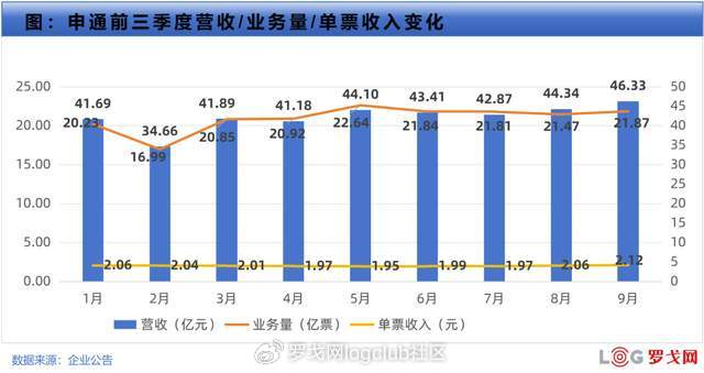 前三季度,圆通实现营收491.32亿元(+13.52%),业务量达225.84亿件(+19.4%),市场占有率提升至15.57%,稳居行业第二;归母净利润28.77亿元,同比微降1.83%。利润小幅下滑,主要源于其持续加码国际业务及“东方天地港”等长期基础设施投入,整体表现仍具韧性。