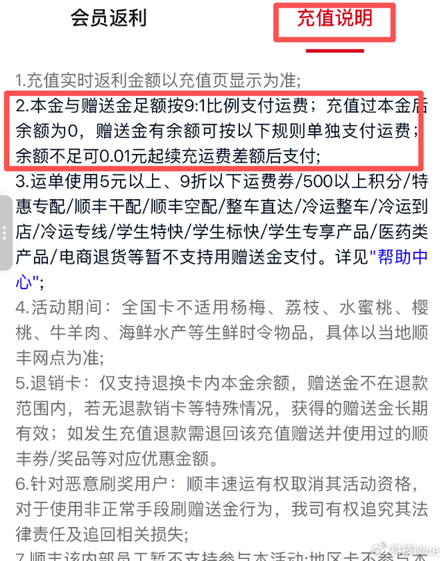 这种“鸡肋”感源于极其苛刻且隐蔽的核销规则。不同于原本属于用户的本金,赠送金的使用被设置了严密的防火墙:它必须与本金按照1:9的比例搭配使用,且有着庞大的“负面清单”,包括空配、冷运、电商退货等十余种高频或特殊场景均被排除在外。