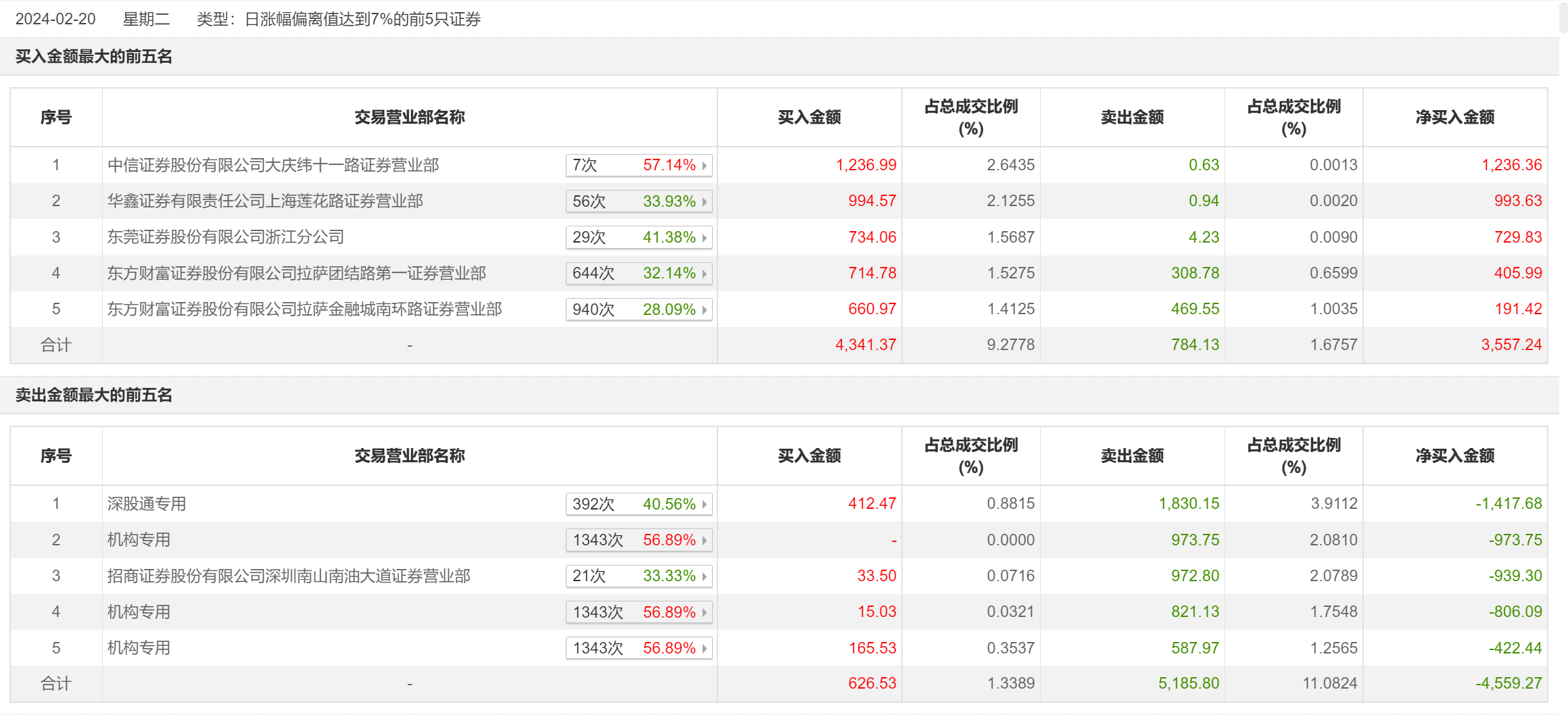 具体来看,机构买入180.56万元,卖出2382.85万元,合计净卖出2202.29万元。此外,中信证券大庆纬十一路证券营业部、华鑫证券上海莲花路证券营业部分别买入1236.99万元、994.57万元;深股通专用、招商证券深圳南山南油大道证券营业部分别卖出1830.15万元、972.80万元。