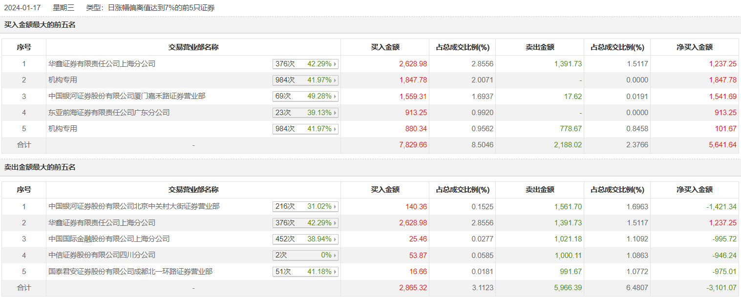 富临运业1月17日涨停,全天换手率达34.61%,振幅达8.95%。龙虎榜数据显示,营业部席位合计净买入1303.32万元。其中,机构买入2728.12万元,卖出778.67万元,合计净买入1949.45万元。此外,华鑫证券上海分公司、中国银河证券厦门嘉禾路证券营业部分别买入2628.98万元、1559.31万元;中国银河证券北京中关村大街证券营业部、华鑫证券上海分公司分别卖出1561.70万元、1391.73万元。