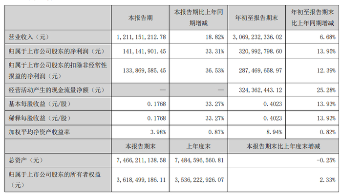 报告显示,康力电梯公司前三季度营业收入为30.69亿元,同比增长6.68%;归母净利润为3.21亿元,同比增长13.95%;扣非归母净利润为2.87亿元,同比增长12.39%;基本每股收益0.40元。