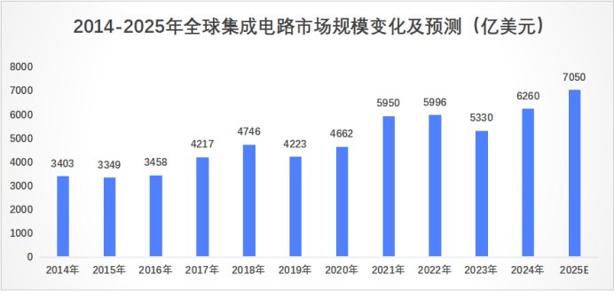 受益于AI和HPC高性能计算的发展,叠加汽车电子回暖、消费电子出货量普增,2024年全球集成电路市场规模达到6260亿美元,创下历史新高。