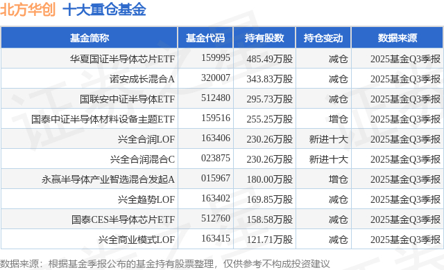 根据2025基金Q3季报公募基金重仓股数据,重仓该股的公募基金共446家,其中持有数量最多的公募基金为华夏基金的华夏国证半导体芯片ETF。华夏国证半导体芯片ETF目前规模为286.01亿元,最新净值1.5827(11月21日),较上一交易日下跌4.25%,近一年上涨28.15%。该公募基金现任基金经理为赵宗庭。赵宗庭在任的基金产品包括:华夏沪深300ETF联接A,管理时间为2017年4月17日至今,期间收益率为49.76%;华夏沪深300ETF,管理时间为2017年4月17日至今,期间收益率为51.0%;华夏野村日经225ETF,管理时间为2019年6月12日至今,期间收益率为71.22%;