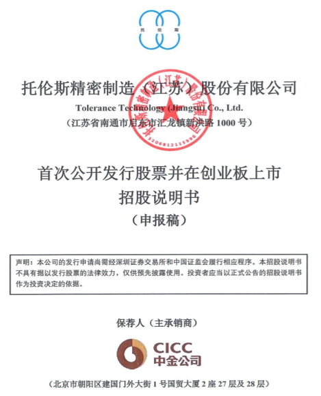 瑞财经 王敏12月23日,深交所官网显示,托伦斯精密制造(江苏)股份有限公司(以下简称“托伦斯”)创业板IPO获受理,保荐机构为中金公司,保荐代表人为王帅、王竹亭。