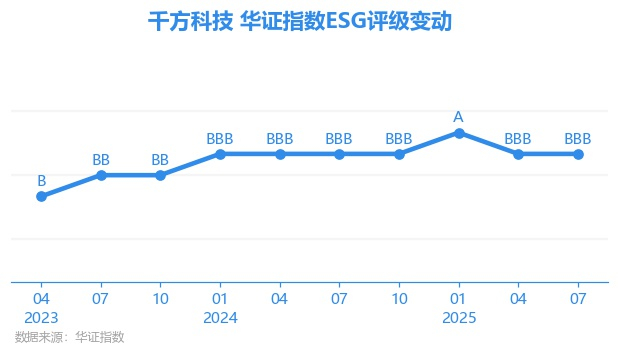 日前,华证指数公布了新一期(2025年7月31日)的ESG评级结果,千方科技(002373.SZ)获得BBB评级(华证指数评级为C起至AAA九档,C为最低档,AAA为其最高一级评级/AA为其第二档),上一期(2025年4月30日)ESG评级为BBB。本期ESG评级在143家信息技术服务行业A股上市公司中排名第10(上一期排名第12)。