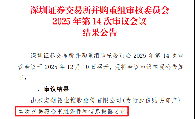 雷达财经讯 2025年12月10日,深交所并购重组审核委员会的一纸批文,将中国铝行业迄今已来最大的资产重组推向台前——宏创控股(002379.SZ)以635亿元的交易对价,收购中国宏桥(01378.HK)旗下核心铝业资产宏拓实业100%股权。