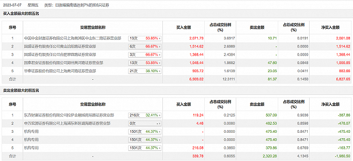 具体来看,机构买入216.08万元,卖出1330.66万元,合计净卖出1114.57万元。此外,中国中金财富证券有限公司上海黄浦区中山东二路证券营业部、国盛证券黄山洽阳路证券营业部分别买入2071.79万元、1514.62万元;东方财富证券拉萨金融城南环路证券营业部、申万宏源证券有限公司上海浦东新区靖海路证券营业部分别卖出507.09万元、482.53万元。