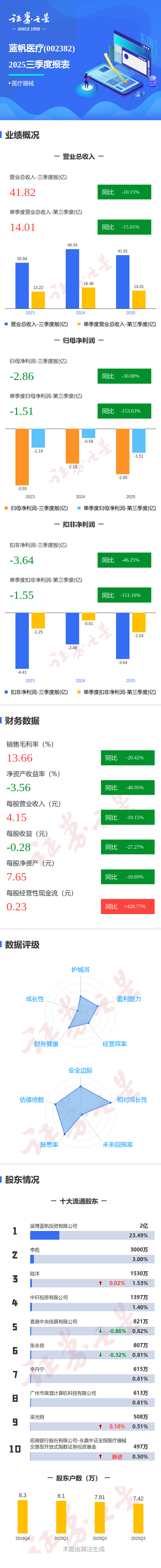图解蓝帆医疗三季报:第三季度单季净利润同比下降153.64%