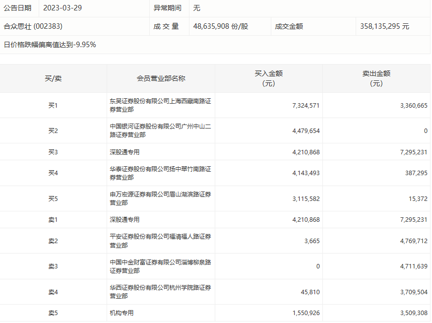 3月29日,合众思壮今日跌停,龙虎榜数据显示,上榜营业部席位全天成交5263.33万元,占当日总成交金额比例为14.7%。其中,买入金额为2487.46万元,卖出金额为2775.87万元,合计净卖出288.42万元。