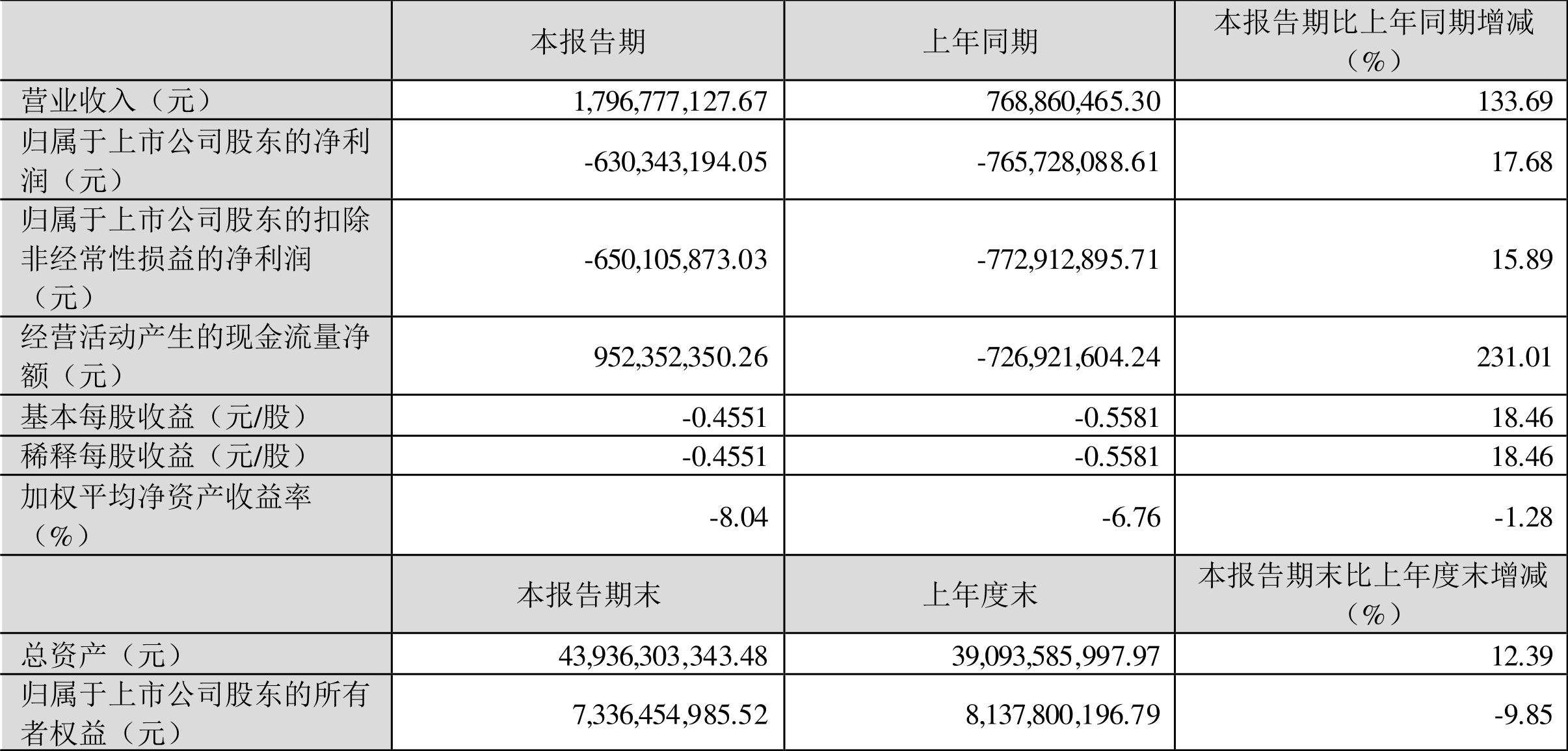 数据显示,2024年第一季度公司加权平均净资产收益率为-8.04%,较上年同期下降1.28个百分点;公司2024年第一季度投入资本回报率为-2.42%,较上年同期增长0.71个百分点。