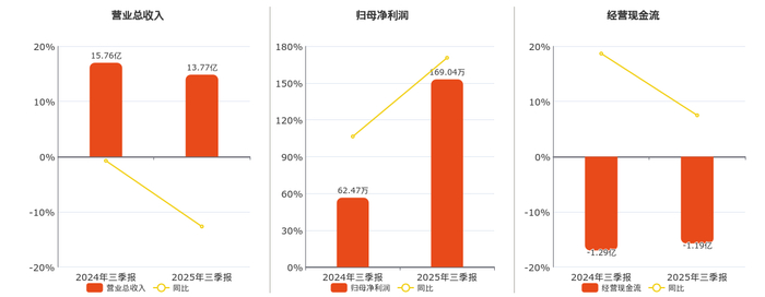 公司营业总收入为13.77亿元,在已披露的同业公司中排名第21,较去年同报告期营业总收入减少2.00亿元,同比较去年同期下降12.66%。归母净利润为169.04万元,在已披露的同业公司中排名第29。经营活动现金净流入为-1.19亿元,在已披露的同业公司中排名第27。