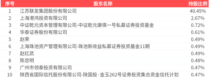 公司股东户数为2.10万户,前十大股东持股数量为1.53亿股,占总股本比例为47.33%,前十大股东持股情况如下: