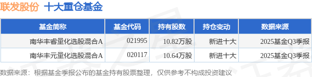 根据2025基金Q3季报公募基金重仓股数据,重仓该股的公募基金共2家,其中持有数量最多的公募基金为南华基金的南华丰睿量化选股混合A。南华丰睿量化选股混合A目前规模为0.12亿元,最新净值1.2365(1月8日),较上一交易日下跌0.55%,近一年上涨24.2%。该公募基金现任基金经理为黄志钢。黄志钢在任的基金产品包括:南华丰汇混合A,管理时间为2022年3月5日至今,期间收益率为99.75%;南华丰元量化选股混合A,管理时间为2024年1月23日至今,期间收益率为45.22%;南华丰利量化选股混合A,管理时间为2025年3月7日至今,期间收益率为12.84%。