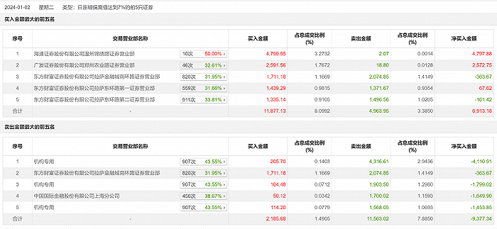 1月2日,双象股份今日涨停,全天换手率达25.44%,振幅达9.68%。龙虎榜数据显示,营业部席位合计净卖出2100.5万元。其中,机构买入424.38万元,卖出7788.15万元,合计净卖出7363.78万元。此外,海通证券温州锦绣路证券营业部、广发证券郑州农业路营业部分别买入4799.95万元、2591.56万元;东方财富证券拉萨金融城南环路证券营业部、中国国际金融上海分公司分别卖出2074.85万元、1700.02万元。