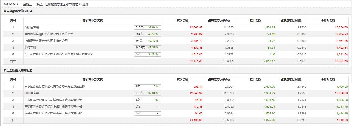 具体来看,机构买入1533.45万元,卖出50.81万元,合计净买入1482.64万元。此外,深股通专用、中国国际金融上海分公司分别买入1.26亿元、2983.09万元;中泰证券青岛香港中路证券营业部、深股通专用分别卖出2429.05万元、1988.29万元。