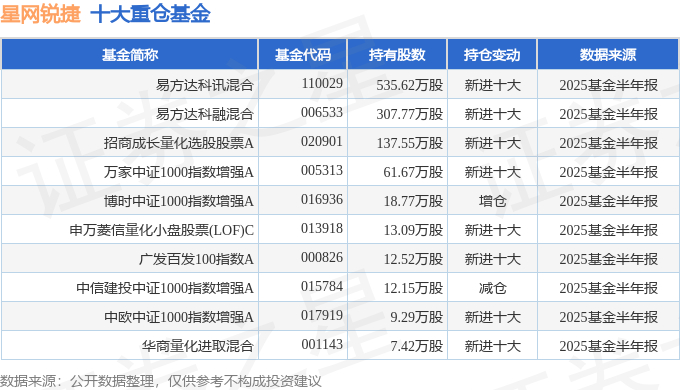 持有星网锐捷最多的基金为易方达科讯混合,目前规模为38.49亿元,最新净值2.8787(10月22日),较上一交易日下跌0.85%,近一年上涨91.93%。该基金现任基金经理为刘健维。