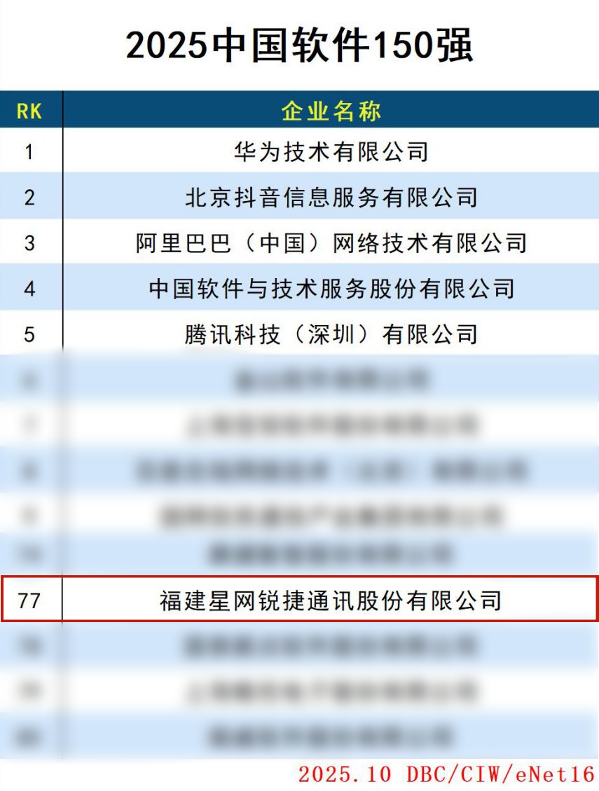 近日,中国科学院旗下权威媒体《互联网周刊》联合德本咨询等机构共同发布了“2025中国软件150强”榜单。星网锐捷凭借在ICT基础设施及AI应用领域的深厚积淀及前瞻的创新能力,成功入选榜单,位列第77名。