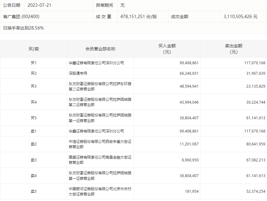 7月21日,省广集团今日跌6.02%,龙虎榜数据显示,上榜营业部席位全天成交7.78亿元,占当日总成交金额比例为25%。其中,买入金额为3.13亿元,卖出金额为4.64亿元,合计净卖出1.51亿元。