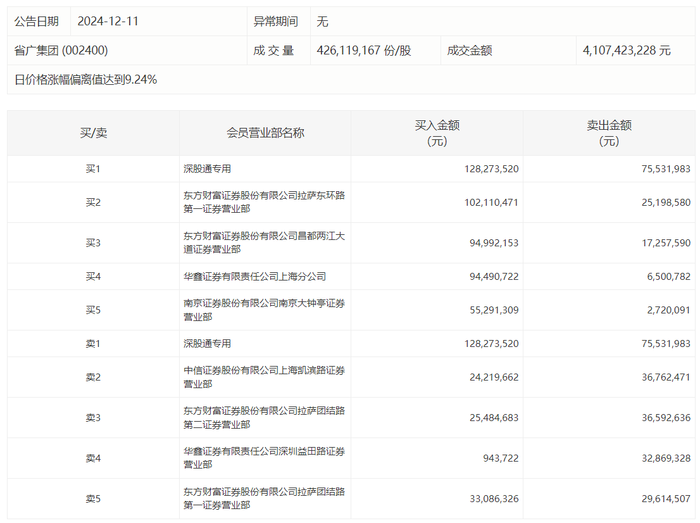 具体来看,知名游资现身龙虎榜,小鳄鱼(南京证券股份有限公司南京大钟亭证券营业部)净买入5257.12万元。此外,深股通专用、东方财富证券拉萨东环路第一证券营业部分别买入1.28亿元、1.02亿元;深股通专用、中信证券上海凯滨路证券营业部分别卖出7553.20万元、3676.25万元。
