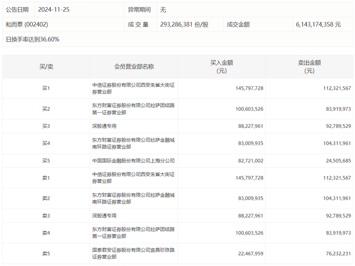 和而泰今日跌9.9%,龙虎榜数据显示,上榜营业部席位全天成交10.17亿元,占当日总成交金额比例为16.55%。其中,买入金额为5.23亿元,卖出金额为4.94亿元,合计净买入2874.72万元。