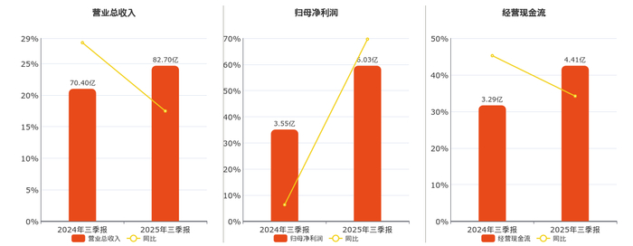 公司营业总收入为82.70亿元。归母净利润为6.03亿元。经营活动现金净流入为4.41亿元。