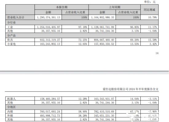 爱仕达的外销由去年同期的3.45亿增长到今年的4.93亿,增长幅度达42.92%。而受内部市场的影响,内销同比下降了2.86%。