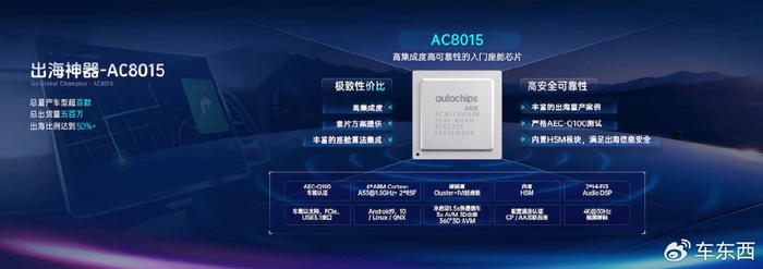 在“芯”上,杰发科技的AC8015芯片凭借“一套硬件兼容全球”的能力和大规模量产验证,成为车企的“出海神器”;