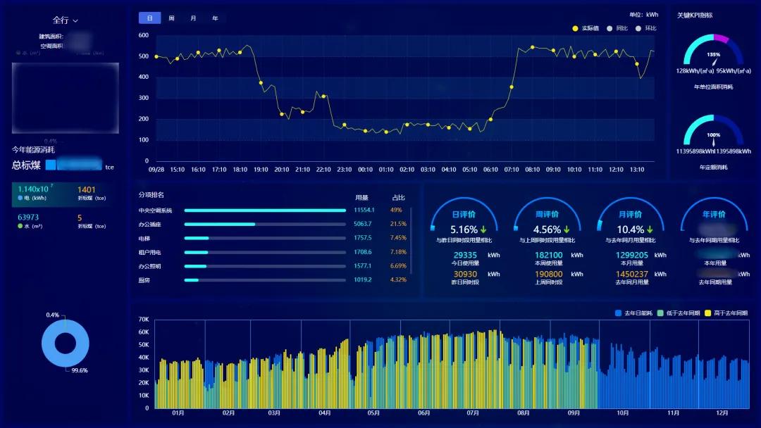 图:达实为该银行提供的能源管理平台达实智能为某大型股份制商业银行打造了能源管理平台,搭建能碳统计平台,自动采集用电、用水数据,录入天然气、燃料数据,平台自动统计用量及折算碳排数据,制定并积极达成企业ESG双碳目标。平台对该银行总行、分行、支行、网点共200多家机构的能耗自动监测,提高能源管理效率。结合平台能源对比验证了节能改造成果,计算出改造回报率为2.1年。