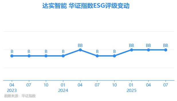 日前,华证指数公布了新一期(2025年7月31日)的ESG评级结果,达实智能(002421.SZ)获得BB评级(华证指数评级为C起至AAA九档,C为最低档,AAA为其最高一级评级/AA为其第二档),上一期(2025年4月30日)ESG评级为BB。本期ESG评级在143家信息技术服务行业A股上市公司中排名第36(上一期排名第41)。