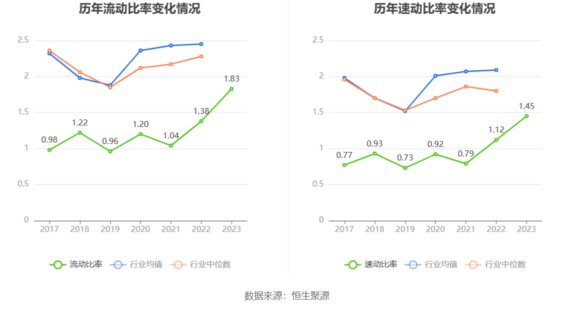 2023年,公司流动比率为1.83,速动比率为1.45。