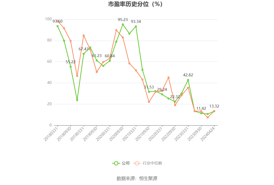 市盈率为负时,不显示当期分位数,会导致折线图中断。