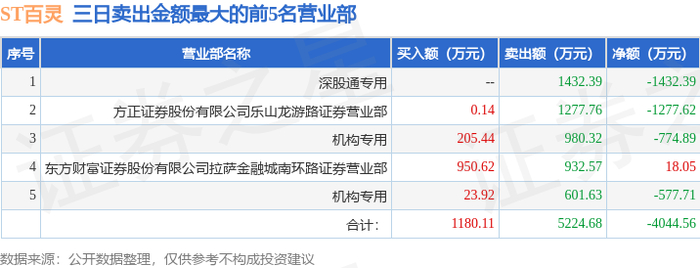 12月30日ST百灵(002424)龙虎榜数据:游资毛老板上榜
