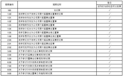 1、如欲投票同意议案,请在“同意”栏内相应地方填上“√”;如欲投票反对议案,请在“反对”栏内相应地方填上“√”;如欲投票弃权议案,请在“弃权”栏内相应地方填上“√”;