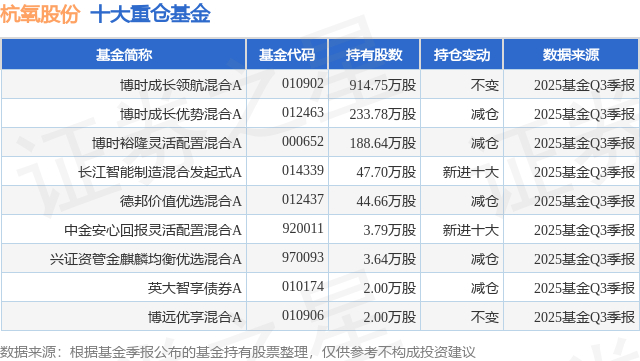 重仓杭氧股份的公募基金请见下表: