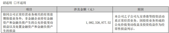 根据半年报,公司上半年“持有金融资产和金融负债产生的公允价值变动损益以及处置金融资产和金融负债产生的损益”达到10.82亿元。至于为什么会被计入扣非后利润,公司称,这部分损益是子公司从事投资活动产生,为正常经营业务,所以不属于非经常性损益。