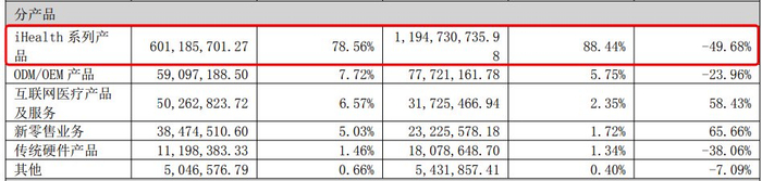 今年上半年,公司核心产品iHealth系列仍未止住下滑趋势,收入同比下降49.68%,降速甚至超过去年全年。