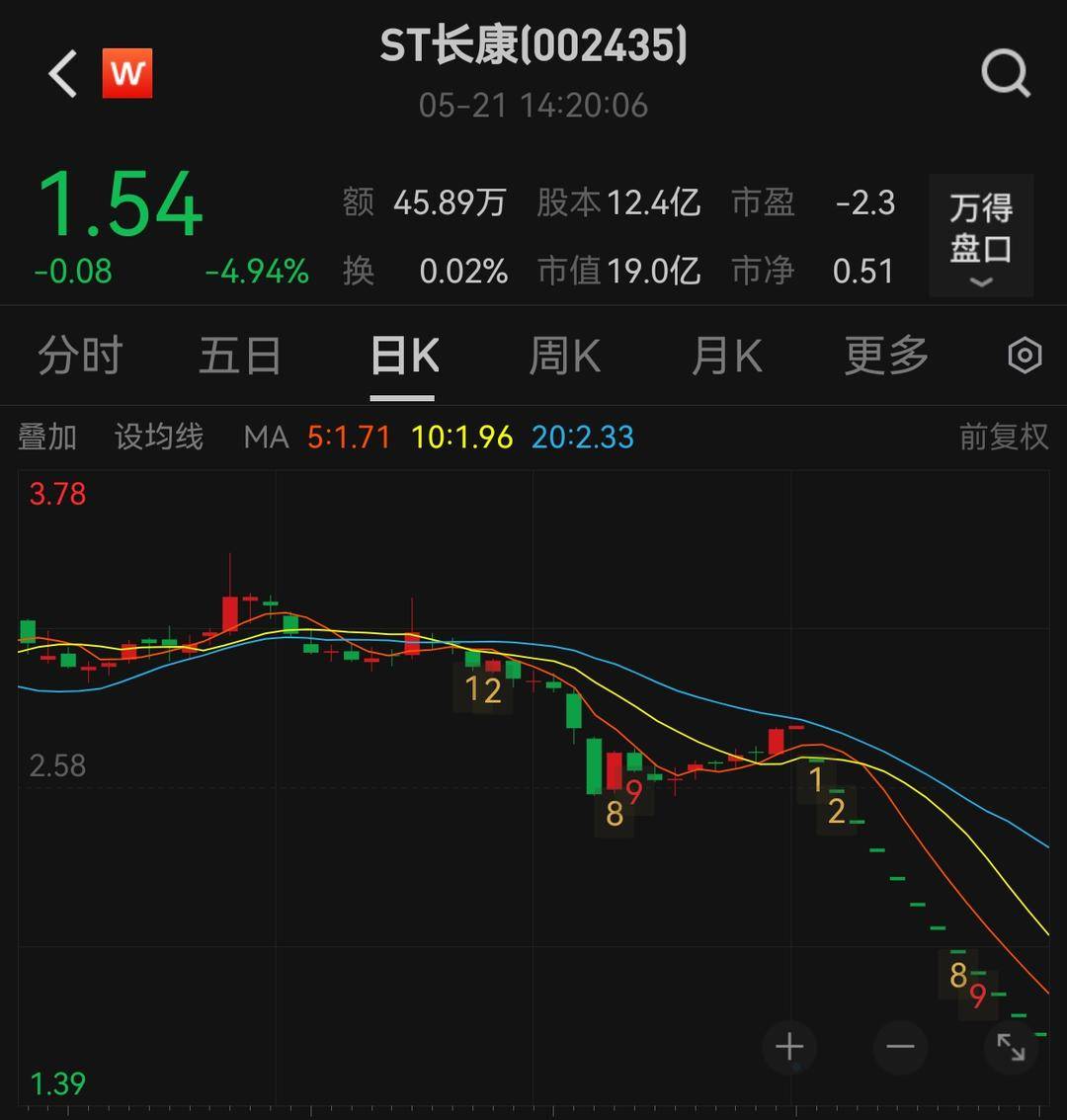 股价不足2元!ST长康被立案收12个跌停 ,股民可争取索赔