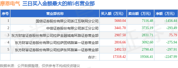 证券之星消息,沪深交易所2025年11月20日公布的交易公开信息显示,摩恩电气(002451)因连续三个交易日内,跌幅偏离值累计达到20%的证券登上龙虎榜。此次是近5个交易日内第3次上榜。