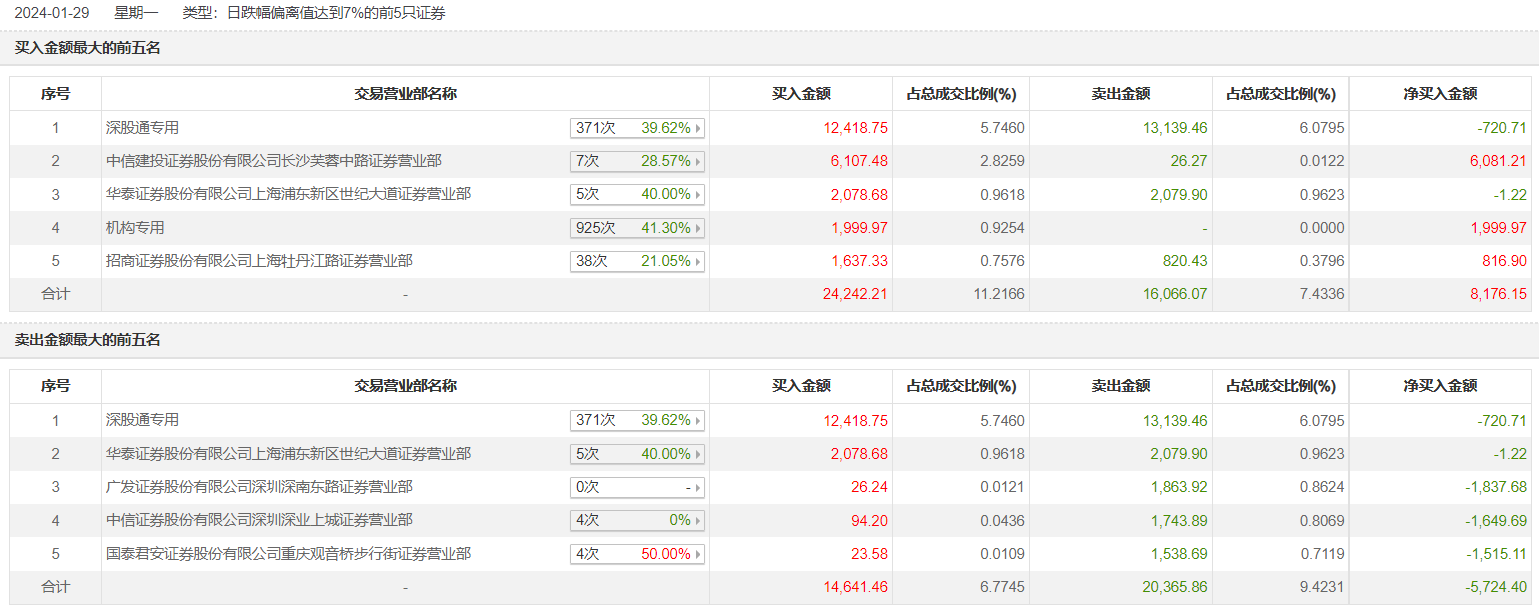 晶澳科技1月29日跌停,全天换手率达3.42%,振幅达7.31%。龙虎榜数据显示,营业部席位合计净买入3173.67万元。其中,机构合计净买入1999.96万元。此外,深股通专用、华泰证券上海浦东新区世纪大道证券营业部分别卖出1.31亿元、2079.90万元;深股通专用、中信建投证券长沙芙蓉中路证券营业部分别买入1.24亿元、6107.48万元。