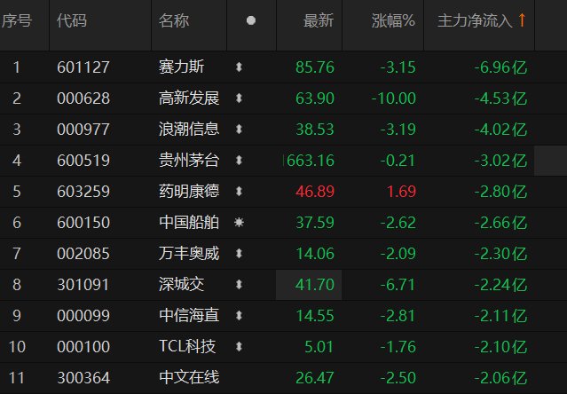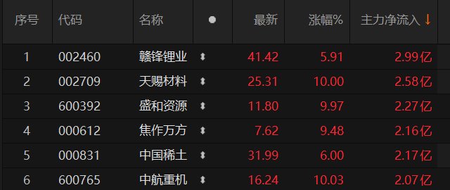 上证报中国证券网讯 截至4月9日14时35分,6只A股的主力资金净流入额超过2亿元。其中,赣锋锂业净流入额近3亿元,位居首位。11只A股的主力资金净流出额超过2亿元。其中,赛力斯净流出额近7亿元,位居首位。