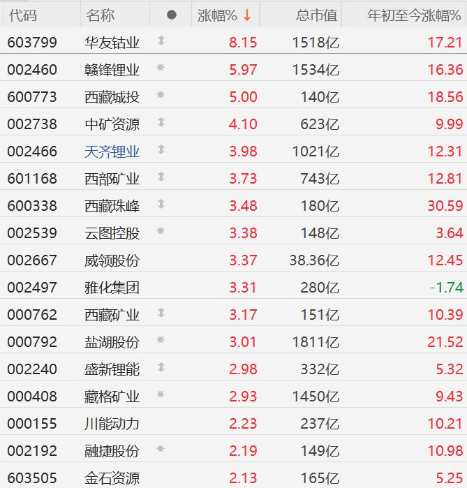 A股锂矿股逆势上涨,赣锋锂业、西藏城投涨超5%