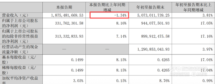 然而在上半年实现20%以上的盈利涨幅后,珠江啤酒第三季度明显降速,营收同比下滑1.34%,归母净利润同比涨幅亦回落至个位数。