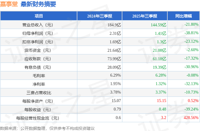 嘉事堂(002462)2025年三季报简析:净利润同比下降38.81%