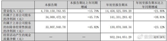 其中第三季度,公司营收、归母净利润分别为47.59亿元和0.34亿元,两业绩指标同比、环比均有所下滑,尤其是归母净利润同比、环比降幅均在四成以上。
